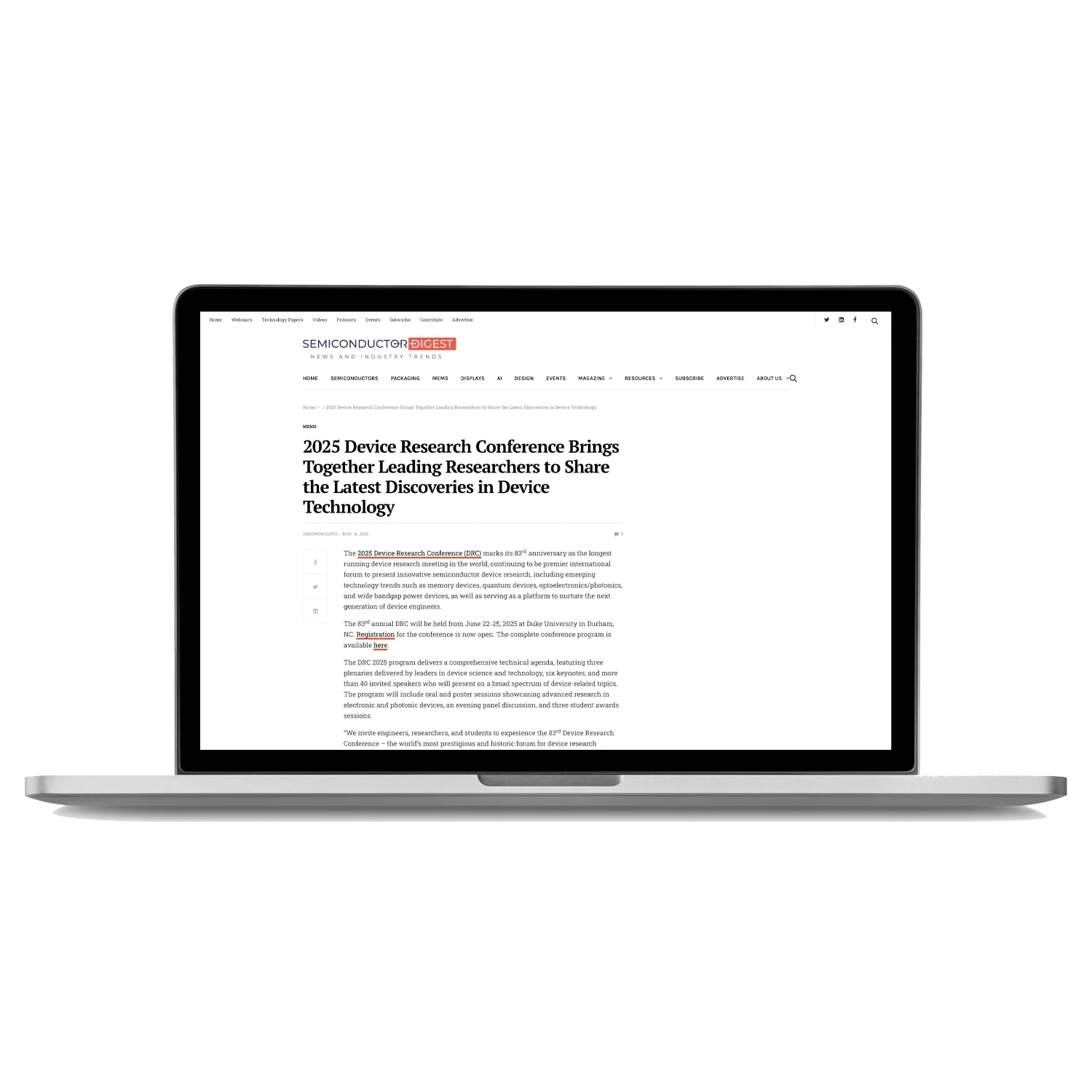 Device Research Conference Semiconductor Digest2025 Device Research Conference Brings Together Leading Researchers to Share the Latest Discoveries in Device TechnologyREAD THE ARTICLE Geoff DunkakFebruary 6, 2026ARTICLES Twitter LinkedIn0 0 Likes