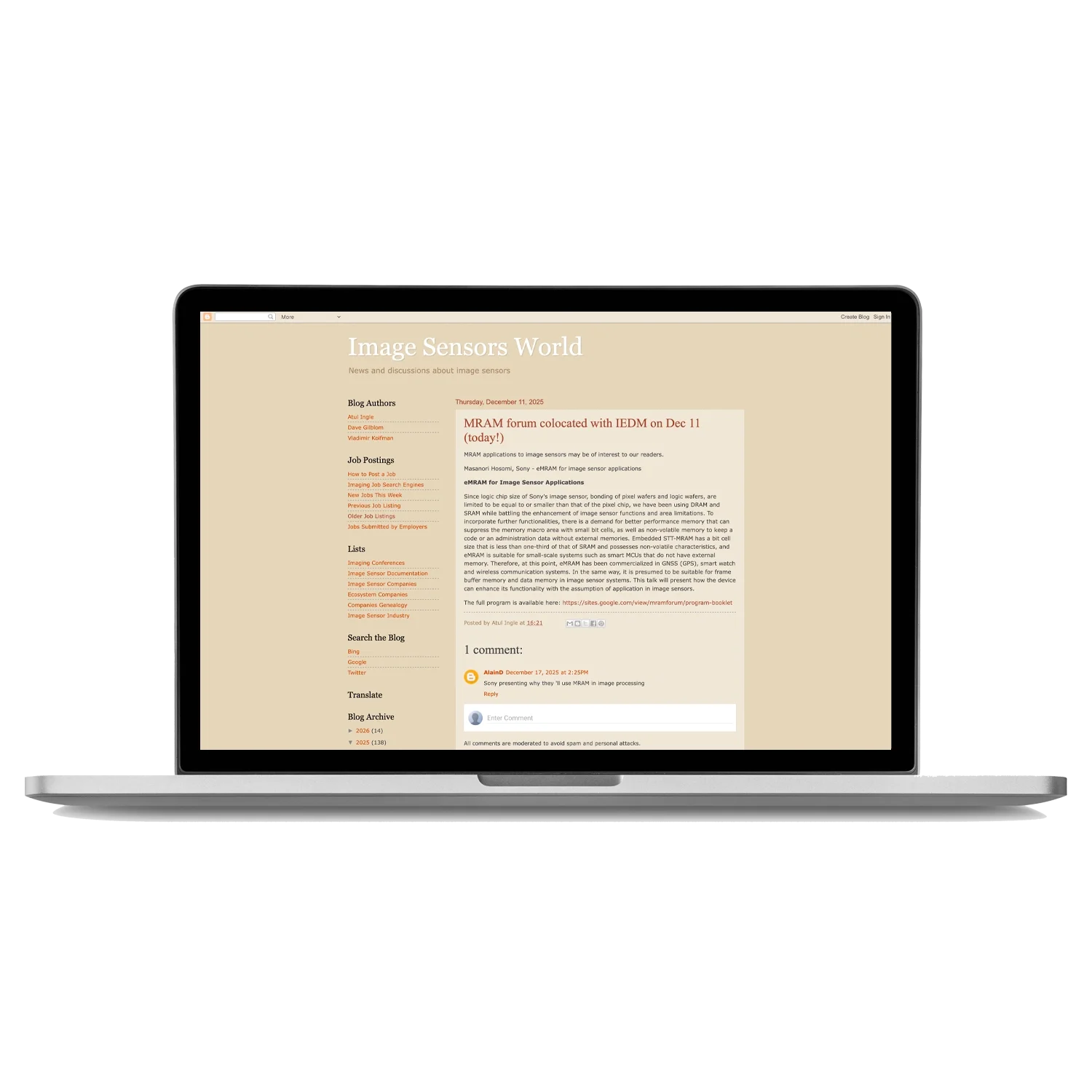 MRAM Innovation Forum Image Sensors World (Blog)MRAM forum co-located with IEDM on Dec 11READ THE ARTICLE Geoff DunkakFebruary 9, 2026ARTICLES Twitter LinkedIn0 0 Likes