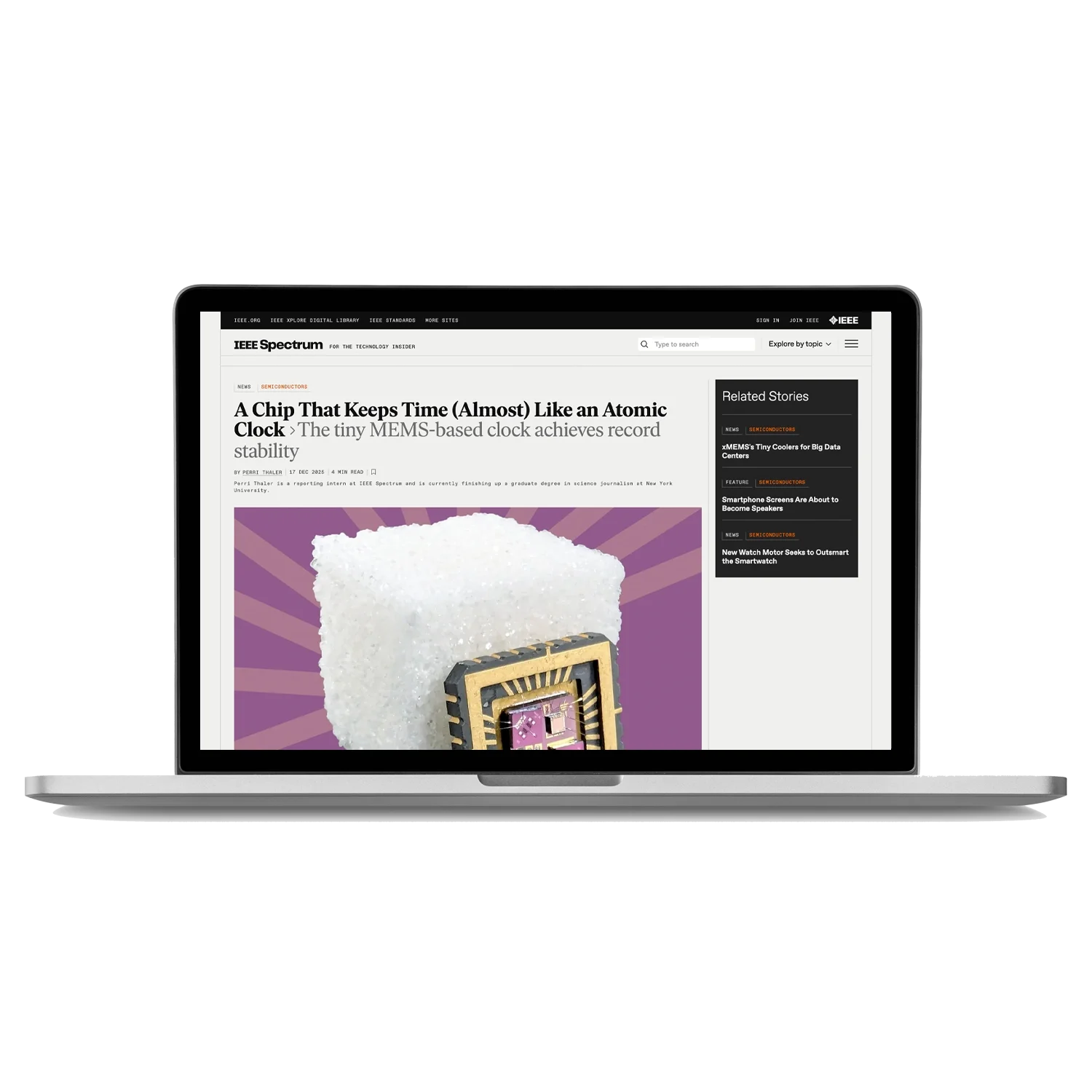 IEEE International Electron Devices Meeting IEEE SpectrumA Chip That Keeps Time (Almost) Like an Atomic Clock / The tiny MEMS-based clock achieves record stabilityREAD THE ARTICLE Geoff DunkakMarch 29, 2020ARTICLES Twitter LinkedIn0 0 Likes